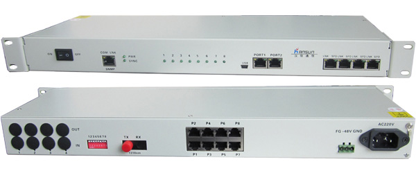 產(chǎn)品簡介 HS-OPTEL系列 8路電話光端機是在超大規(guī)模集成電路的基礎(chǔ)上開發(fā)的點對點語音光傳輸設(shè)備,它是以簡潔的形式實現(xiàn)了最多4條E1電路和1條100M線速以太網(wǎng)數(shù)據(jù)通道,加上8路語音通道(FXO、FXS或二/四線E&M音頻),加上4路RS232通道的語音光傳輸設(shè)備。具告警監(jiān)控功能完善,集成度高,功耗低,性能穩(wěn)定,使用方便。