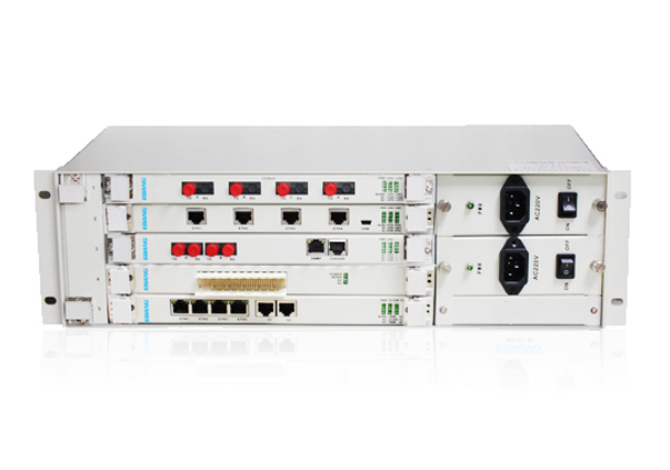 HS-MSAP-3000-3U系統(tǒng)為集中式機框結(jié)構(gòu)(3U/19inch),采用基于插卡的模塊化設(shè)計,可以混插入不同容量的PDH光分支盤、光纖貓盤、以太網(wǎng)分支盤以及具有1+1保護功能的STM-1上聯(lián)光口盤等,實現(xiàn)將各個分支業(yè)務(wù)到上游傳輸網(wǎng)絡(luò)的匯聚功能。
