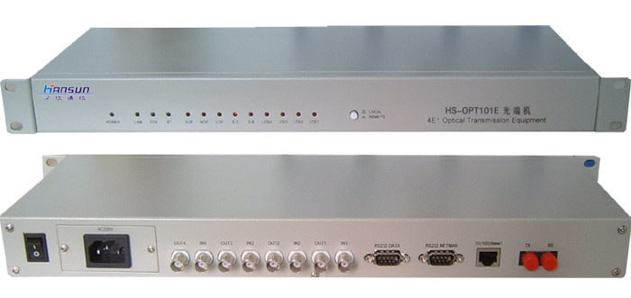 HS-OPT101 4*E1光端機是以超大規(guī)模集成電路為核心構(gòu)成的120路等同于120路話路的光電合一傳輸設備,提供面向電信的E1傳輸,設備固定提供4路E1接口、1路RS232和1路公務電話,并提供完整的網(wǎng)絡管理功能,適用于小容量交換機組網(wǎng)、用戶環(huán)路網(wǎng),移動通信(基站)、專網(wǎng)、DDN網(wǎng)等。